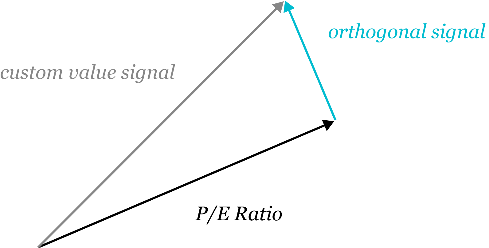 Numerai Signals isolates the component of the signal orthogonal to P/E (and any other signals we have already) and rewards the creator of the signal based on that. By the predictive value after being neutralized by all other signals, we mean the predictive value of this orthogonal component.