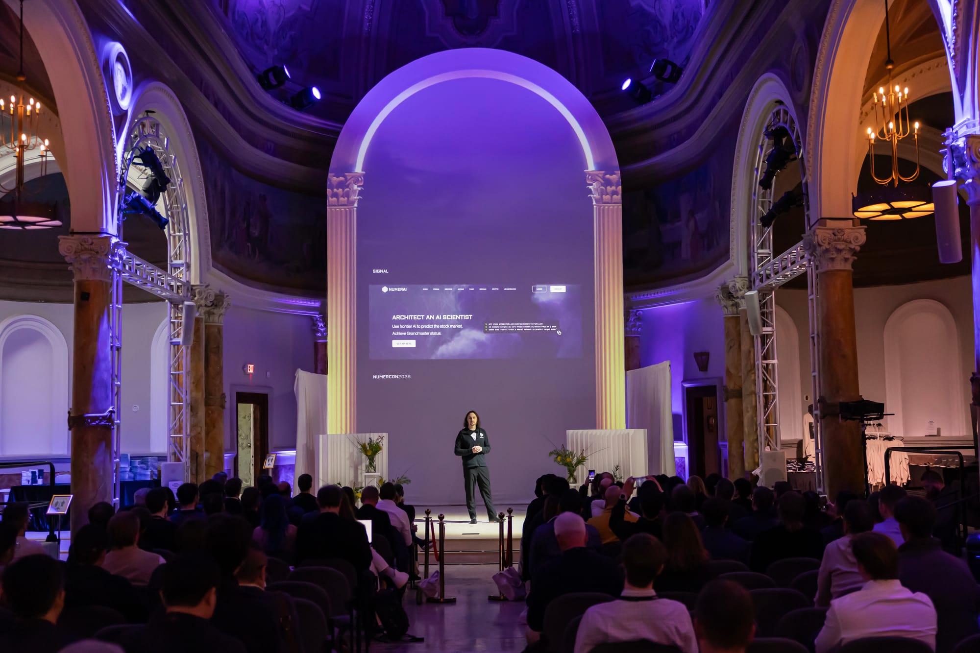 This shift became visible at NumerCon with the live launch of the redesigned Numerai homepage, now centered on architecting an AI scientist.